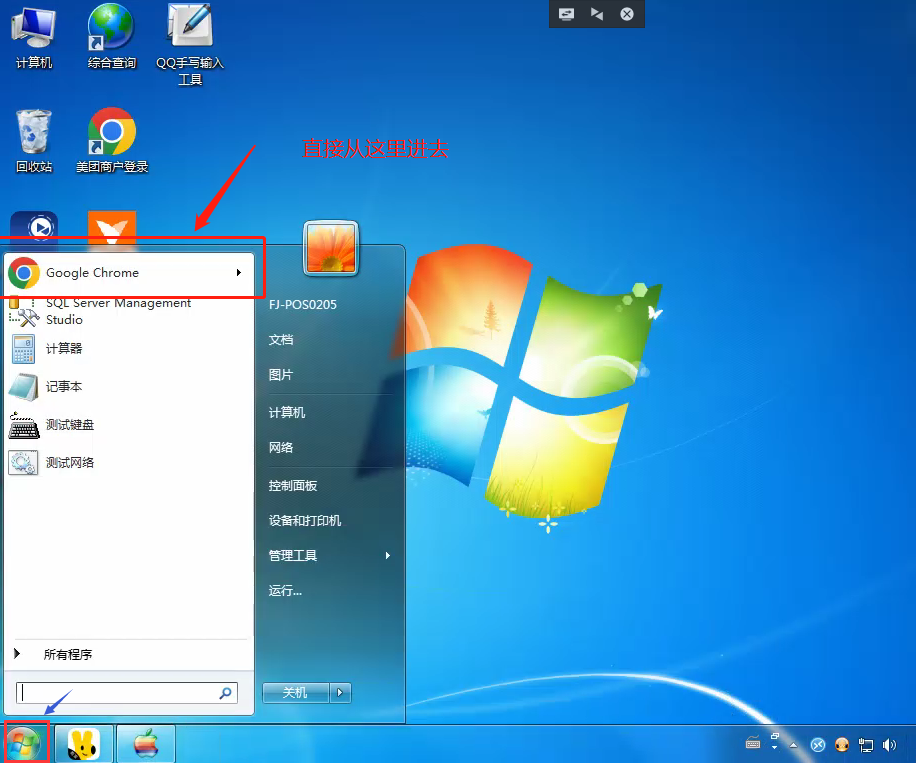 1、双击桌面图标,或者单击开始旁边快启动区的 Chrome (谷歌浏览器)图标