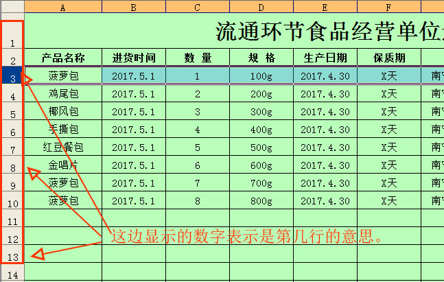 再点击到左边数字“10”,即可选中第3到第10整行的内容。