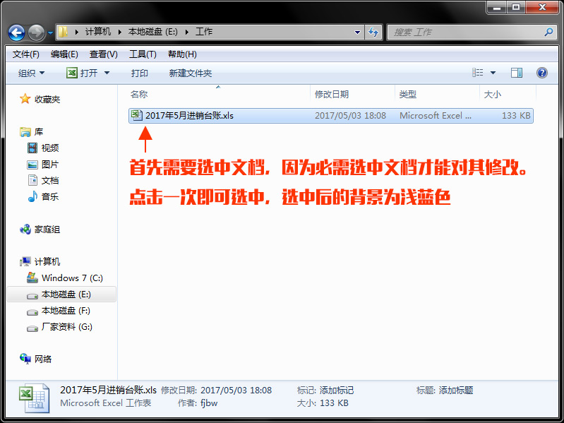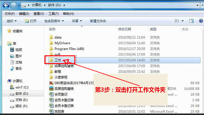 1:双击桌面“计算机”图标,打开D盘,打开“工作”文件夹即可看到台帐表格。