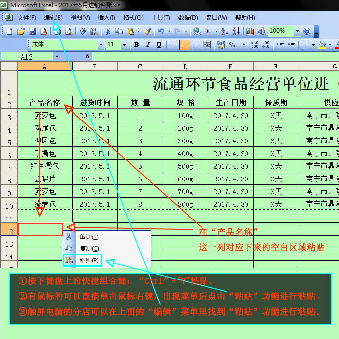 3:在“产品名称”这一列对应下来的空白区域粘贴