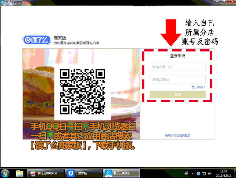 1、双击桌面“饿了么商家版”快捷图标,打开登陆窗口。
